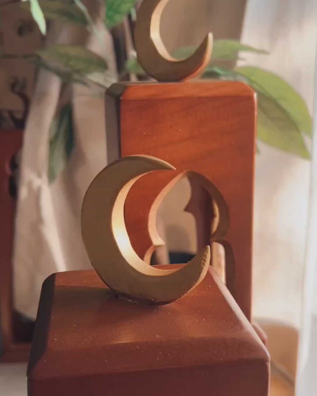 أضيئوا منازلكم بدفء وإشراقة فوانيس رمضان المُشرقة. مصنوعة من خشب داكن فاخر، تُجسّد هذه الفوانيس روح رمضان بتصميمها الأنيق وزخارفها الهلالية الرمزية.